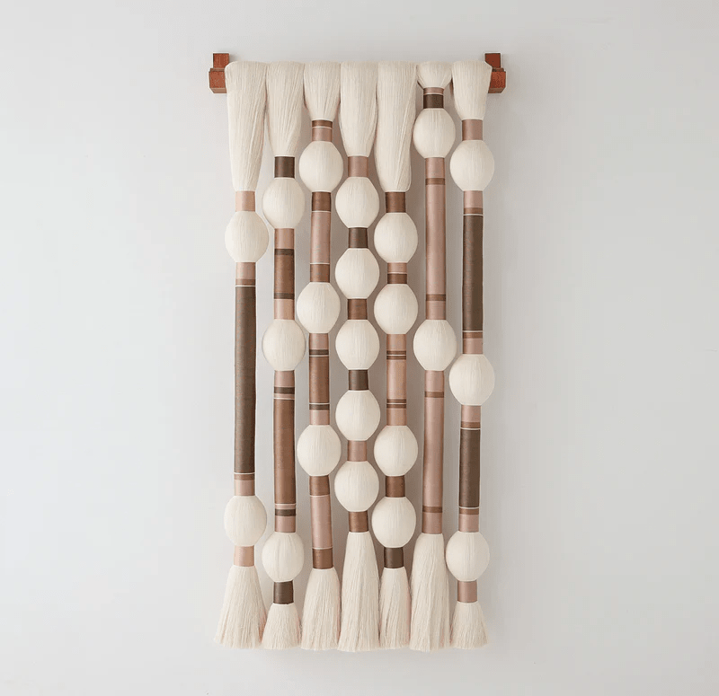 Blending natural materials and textures, this handcrafted wall hanging adds a calming, organic focal point to any room.