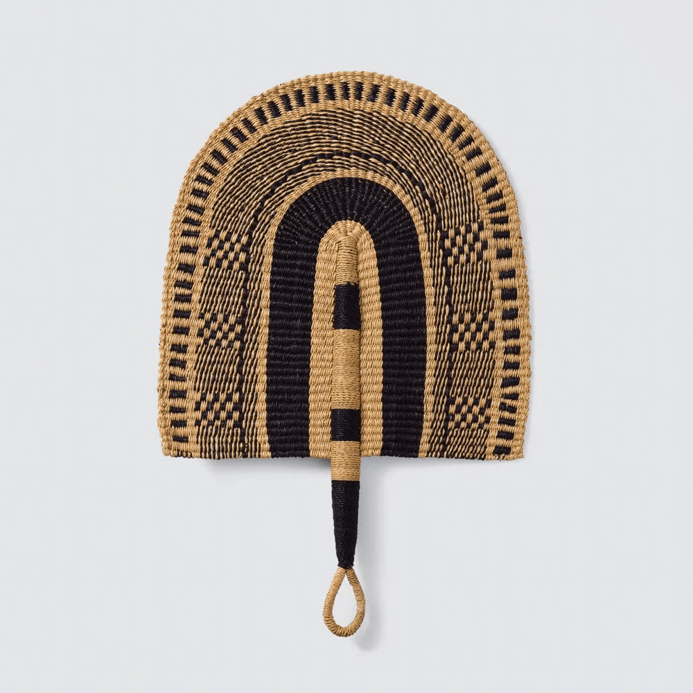 Handwoven by master artisans in Morocco, high-contrast fans that double as fine art.