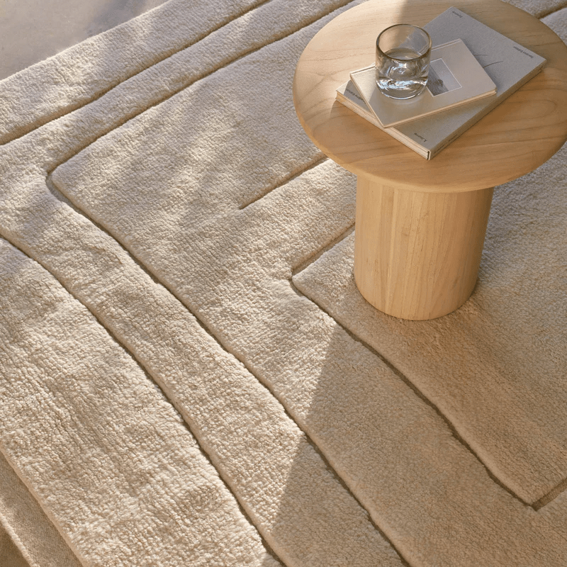 Inspired by the rising and falling lines of contour drawings, each piece is crafted with natural and warm, sand-colored wool to create a plush, textured work of art. Style in a guest bedroom or a home office to add an inviting, cozy touch to your favorite space.