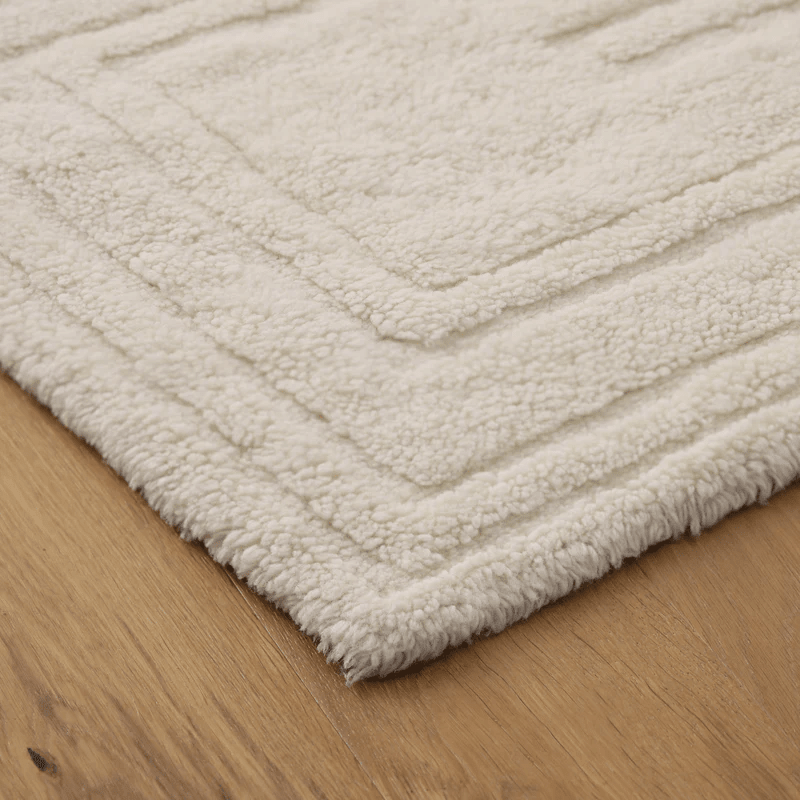 Ideal for high-traffic areas, this exceptionally soft wool accent rug is completely washable, celebrating the beauty of truly livable craft. With an inviting palette of sand and ecru, the rug features areas of low and high pile to create a dimensional geometric pattern.