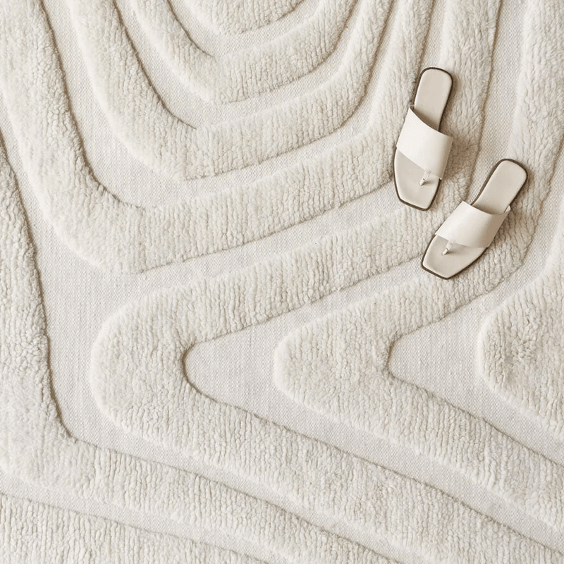 Designed with an organic, artful pattern of contrasting pile heights, this textured wool rug always make a statement.