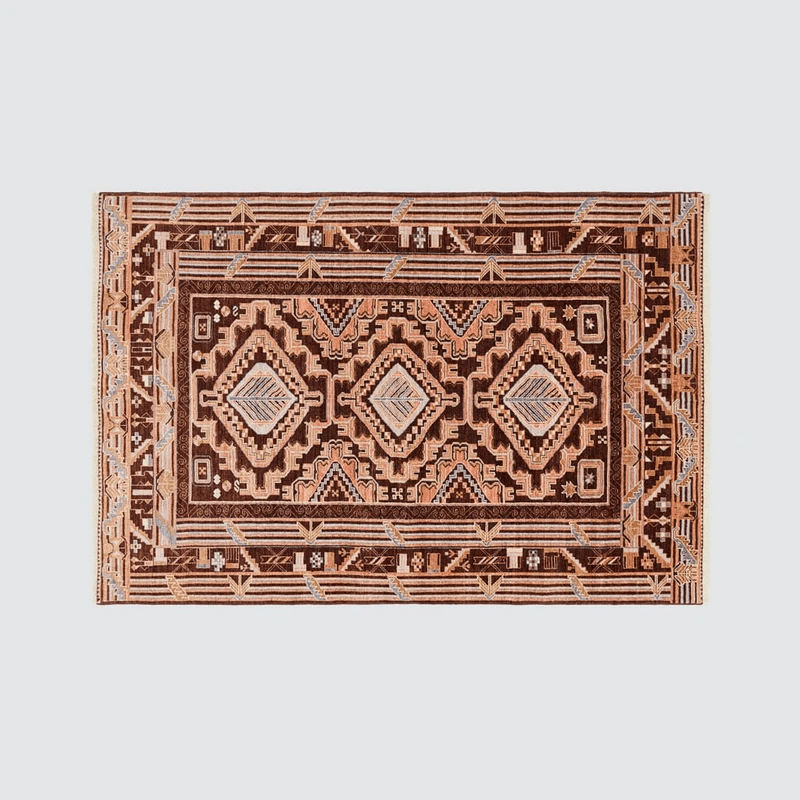 Our most traditional rug has timeless appeal. Knotted by hand, this beautiful area rug features three medallions at its heart, accented with nomadic shapes and motifs along its borders.This wool rug is truly like no other.
