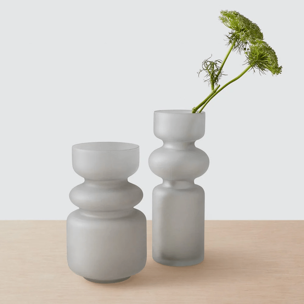 Soft curves. Timeless style. These sculptural glass vases can be styled as a modern addition to your mantlepiece or as a functional bit of tabletop decor any season.