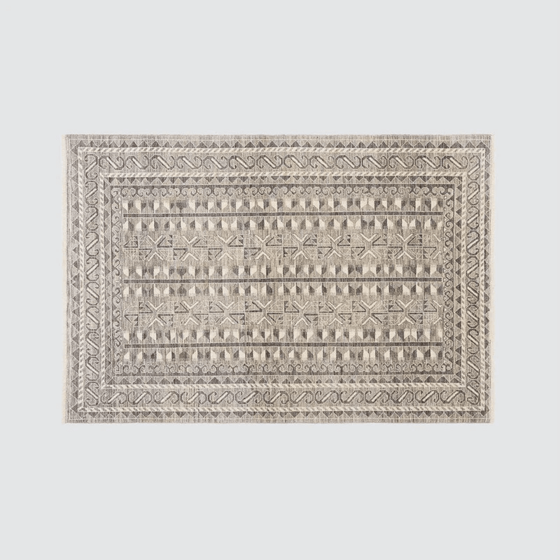 Simplicity is never short on style. Layers of craftsmanship are knotted by hand into this beautiful rug. A rich blend of geometric shapes, each rug features eye-catching patterns of arrows and triangles. Available in a natural shade of charcoal, this rug is a minimal masterpiece.