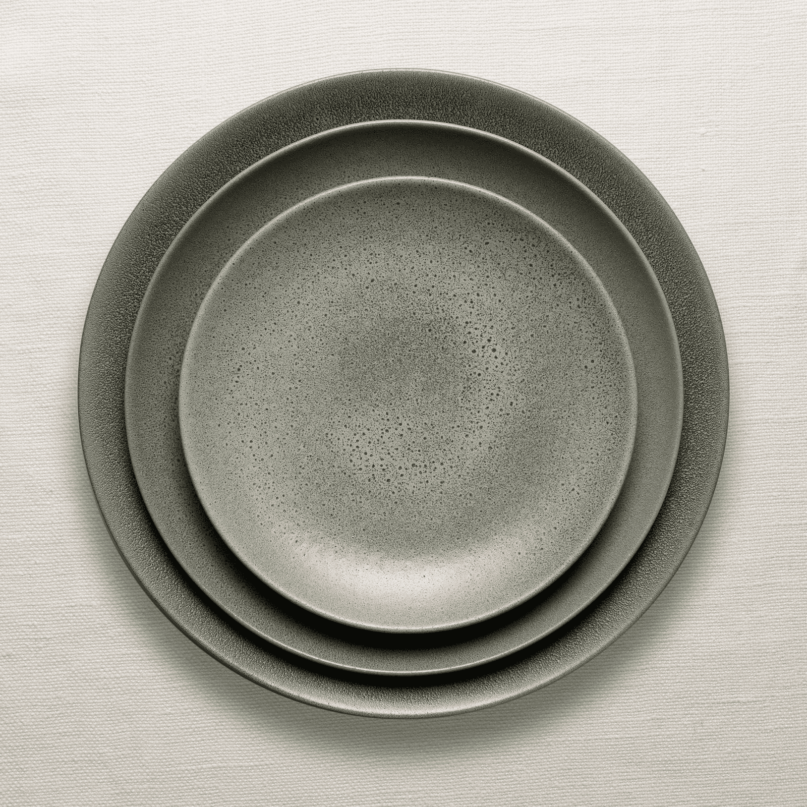 Our porcelain Terra dinnerware is hand-crafted and glazed in our Moroccan atelier. Organic, tactile shapes are refined with a stone glazed finish with a pleasing honed feel, as if weathered by the elements over time.