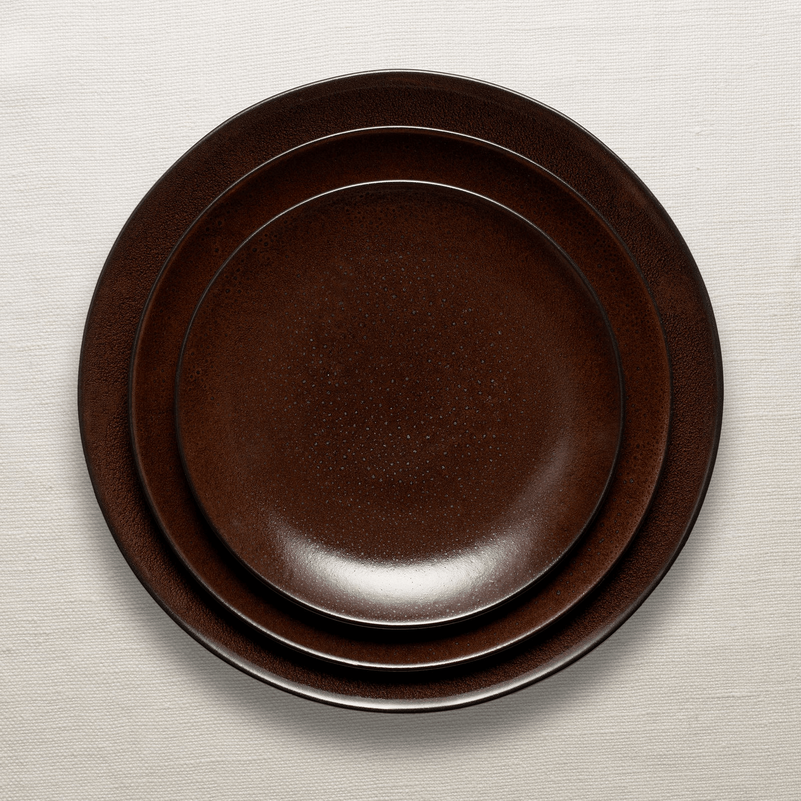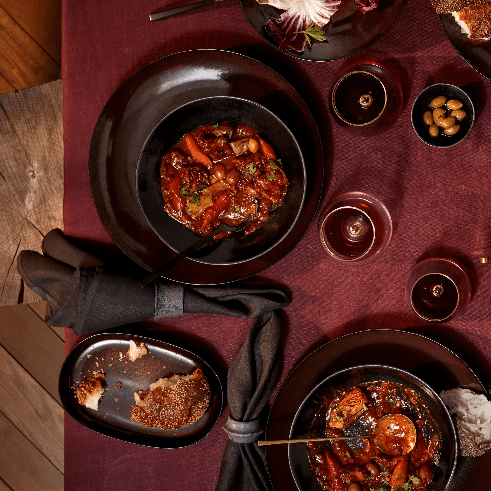 Our porcelain Terra dinnerware is hand-crafted and glazed in our Moroccan atelier. Organic, tactile shapes are refined with a stone glazed finish with a pleasing honed feel, as if weathered by the elements over time.