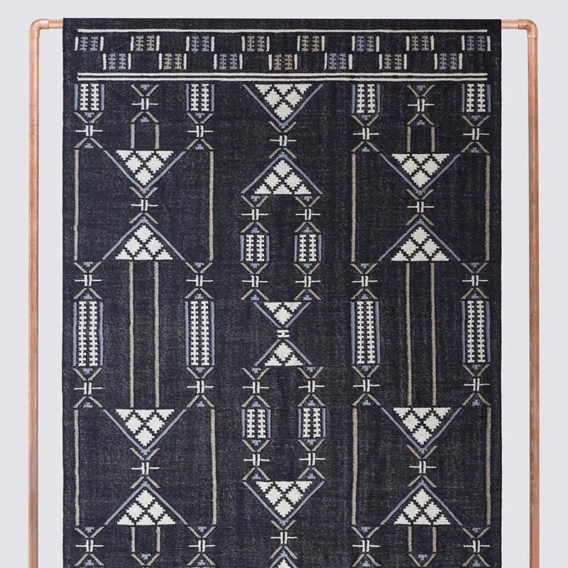 The drama is in the details of this flatweave wool rug. Inspired by antique textiles, the intricate pattern weaves together three rows of diamonds, all accented by traditional motifs that shine against natural shades of deep indigo. Perfect for spaces big and small, it's a natural foundation for any room.