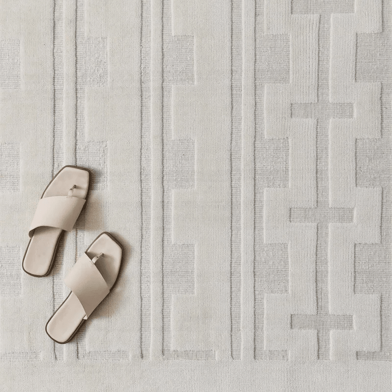 Subtle never looked so stunning. This elegant area rug is hand-knotted with a special technique to create a seamless blend of texture and dimension, with a mix of varying pile heights. Designed in a soft grey and ecru hue and minimal design, this neutral rug was born to live anywhere and everywhere – your living room, home office, or bedroom.