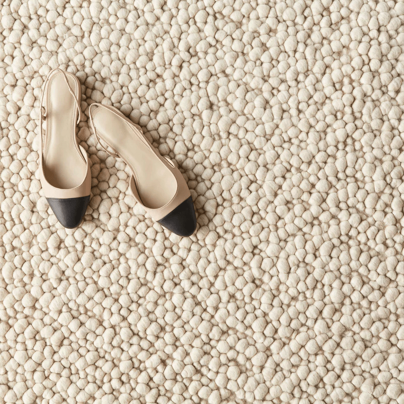 Step into total relaxation. The plush, playful pebbles of this stunning area rug are woven from thick, chunky sheep’s wool, creating a minimal canvas for the subtle, layered tones of the material to truly shine. A dream beneath your feet, each piece is a durable, seamless addition to any space.