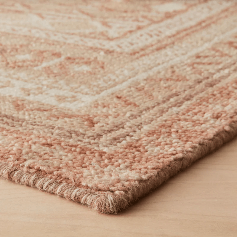Taking a note from your favorite vintage rugs, this incredible hand-knotted accent piece blends rich earth tones with an eccentric global pattern. Sun-bleached tones of clay and sand play across irregular, repeating motifs, adding an effortlessly warm touch to any space.